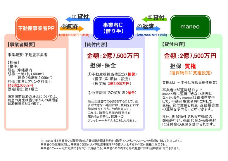 なお、maneo社と事業者Cの融資契約は「責任財産限定特約付」融資 (ノンリコースローン)