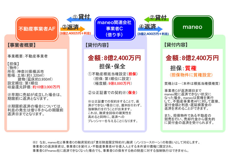 なお、maneo社と事業者Cの融資契約は「責任財産限定特約付」融資 (ノンリコースローン)