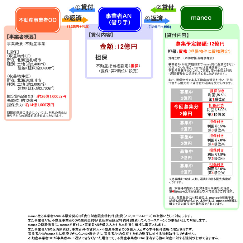 本案件においてmaneoの募集ごとに返済の優先劣後を設定しております。