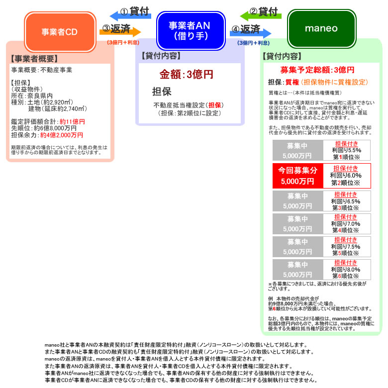 本案件においてmaneoの募集ごとに返済の優先劣後を設定しております。