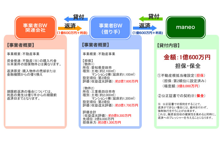 事業者BWの返済については、事業者BW関連会社の事業者BWに対する返済を原資として行われます。