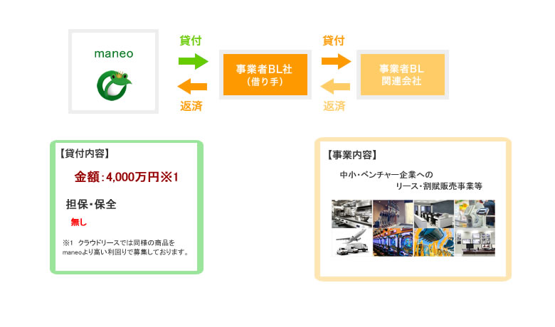 ※1 クラウドリースでは同様の商品をmaneoより高い利回りで募集しております。