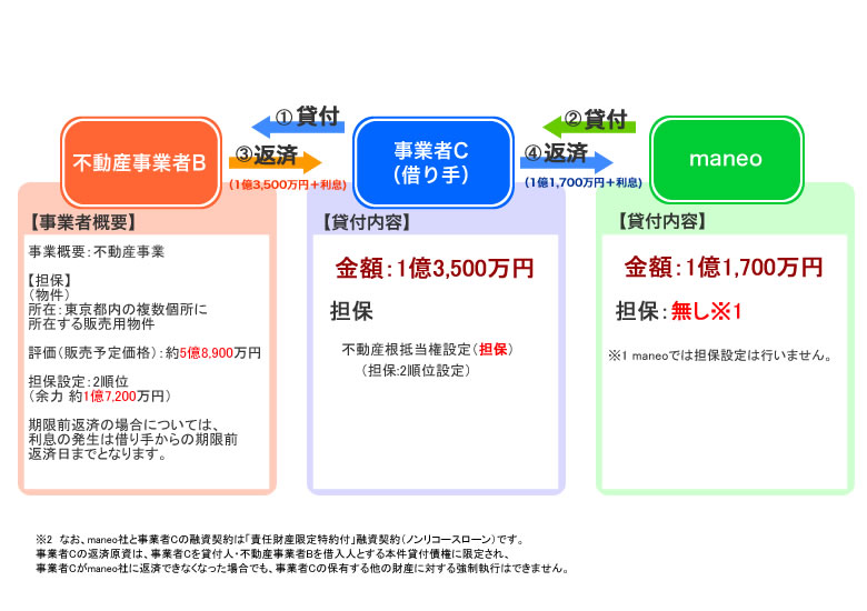 本件貸付債権に限定され、事業者Cがmaneo社に返済できなくなった場合でも、